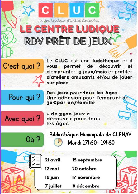 Centre Ludique d’Utilité Collective – Prêt de Jeux + Ajouter à mon Agenda Google + iCal / Outlook export 00 jours 00 heures 00 minutes 00 secondes Prénom Nom Adresse mail Adresse Abonné(e) à la page Facebook Oui je suis abonné/Non je ne suis pas abonné Abonné(e) à PanneauPocket Oui je suis inscrit(e)/non En cochant cette case, j’autorise la mairie de Clénay à utiliser mes informations pour les communications municipales. Envoyer